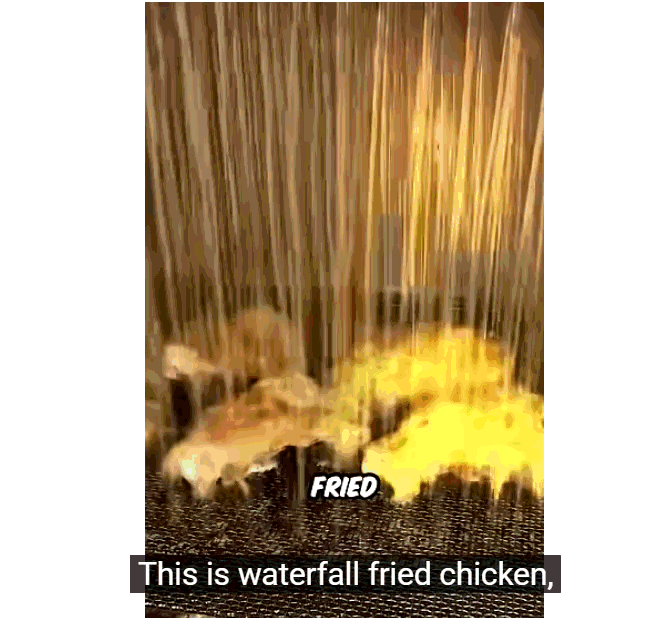 接著,攤販會打開「熱油瀑布」,讓熱油持續流過雞肉表面,從上到下均勻包覆並油炸。隨著熱油不斷沖刷,雞皮外層會慢慢變得酥脆,顏色也逐漸轉成漂亮的金黃色。