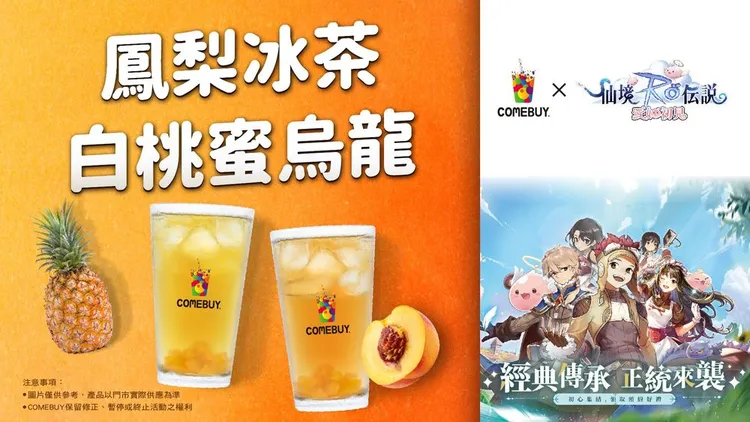 第3彈:「RO和一億人一起COMEBUY」 9/16-11/15活動期間,到全台門市購買任一款RO愛如初見聯名茶飲,即可獲得《RO仙境傳說:愛如初見》主題杯墊一個,全台限量1萬份,送完為止。