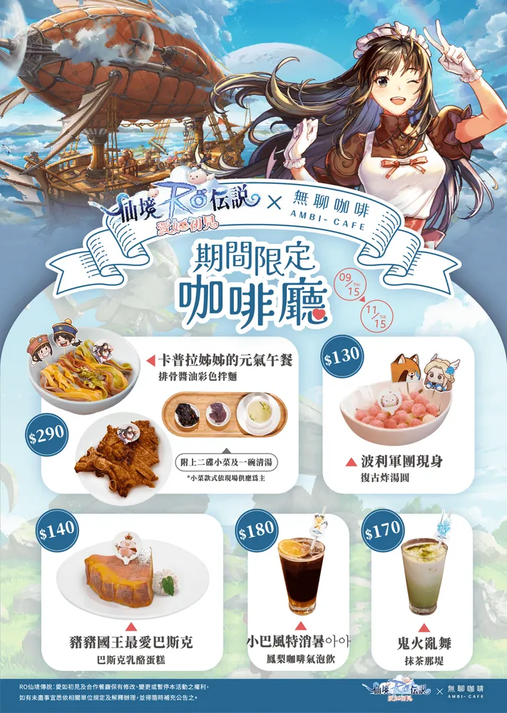 活動一:「無聊咖啡廳」RO快閃店合作 為了讓所有喜愛《RO 仙境傳說:愛如初見》的冒險者們,不僅在遊戲中可以獲得滿滿的應援好禮,官方特別邀請「無聊咖啡」一同將遊戲中NPC所推薦的食物化成現實世界的餐點,同時並打造出專屬的冒險者咖啡廳,期盼讓每一位冒險者不僅能在遊戲中享受到RO仙境傳說專屬的樂趣,也能與朋友們來此參加專屬活動,並互相分享在「米德加爾特大陸」冒險旅途中的點點滴滴與精采回憶。