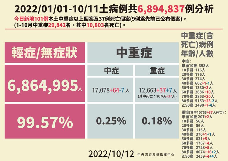 指揮中心統計,國內12歲以下兒童重症累計243例,分別為32例腦炎、25例肺炎、3例敗血症、11例哮吼、157例MIS-C、2例心肌炎、4例其他(共病、新生兒感染等)及9例家中死亡,總死亡數則為36死。