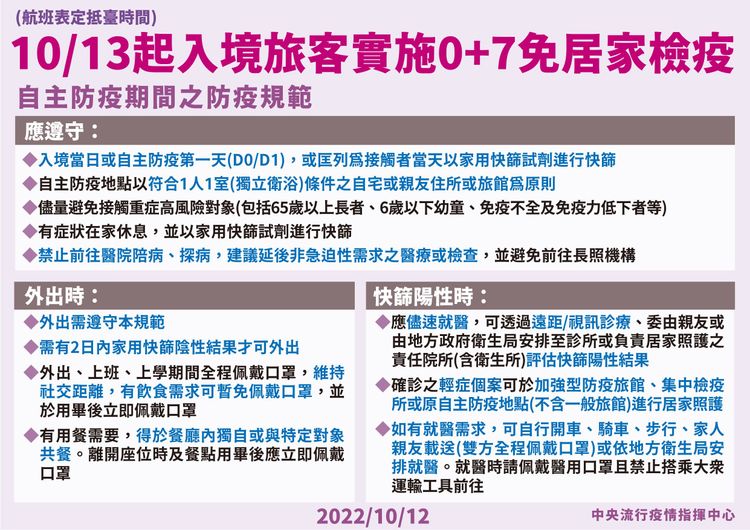 指揮中心說明調整自主防疫期間相關醫療防疫措施如下: