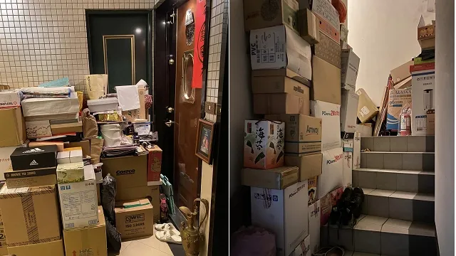 一名網友在臉書「爆料公社公開版」貼出照片,大樓某住戶門口堆滿了大大小小的紙箱、雜物、行李箱,連樓梯間也放滿紙箱,還整齊的往上堆疊。原po發文說:「這樣的鄰居素質⋯已告知當事人與大廈主委,3天過了還是一樣,下一步是1999嗎?」他怒批:「阻礙逃生,非常危險。」