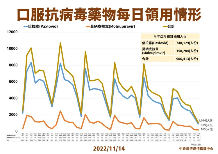 針對6個月到4歲幼兒疫苗最新接種情形,發言人莊人祥指出,昨( 11/13)莫德納幼兒疫苗和輝瑞BNT幼兒疫苗共接種 328人次;該年齡層第一劑接種率 44.4%,第二劑接種率 18.0%。莫德納次世代疫苗昨則接種 1742人次。