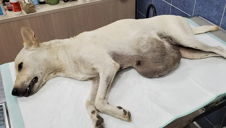 台灣動物緊急救援小組獸醫團隊表示,這顆腫瘤直徑約有19公分,重達5公斤,是相當罕見的案例;但經初步檢查因腫瘤太大且非常深,如果直接切除恐有生命危險;目前獸醫團隊決定先施打抗腫瘤針劑,待腫瘤縮小後,再評估小白狗身體狀進行腫瘤切除。
