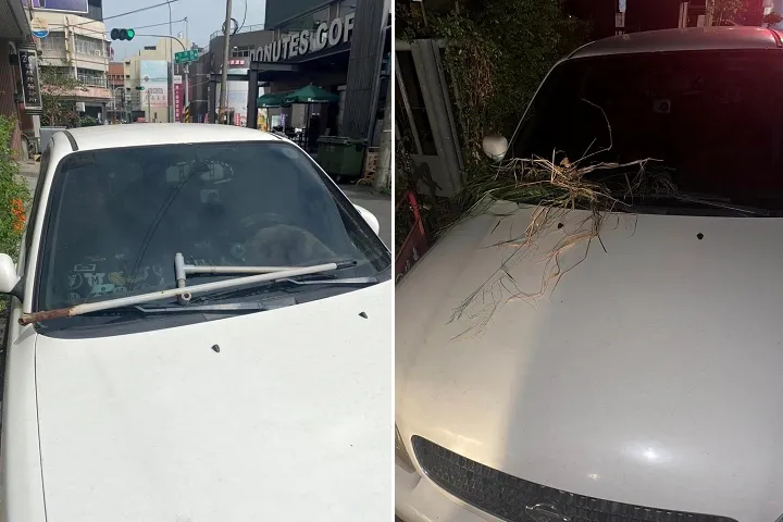 這名原PO在《爆料公社》貼出多張照片,都是他的愛車被對面鄰居大媽丟了有的沒的垃圾,有雜草、垃圾、甚至還有掃帚木柄及一根廢棄水管!最近更直接留了一張嗆聲紙條寫著:「不是你門口,不可長期佔用」,表示至少要大家輪用,還嗆原PO不懂道理,最後語帶威脅寫下:「要吃狗糞嗎?很香」。