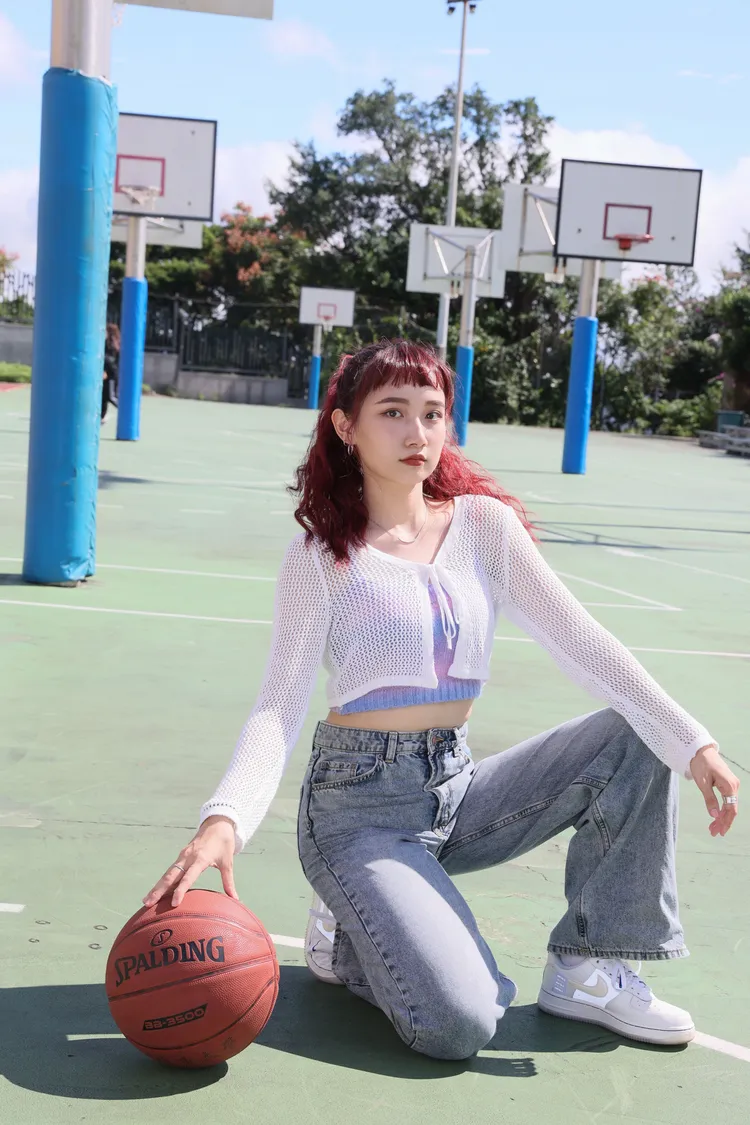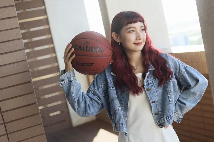 她染了頭紅棕色的頭髮,非常適合她牡羊座熱情的性格,脫下牛仔外套後露出細肩帶的白色上衣,則讓她在上籃的帥氣中增添許多嫵媚。她表示自己很關注台灣的職籃活動,喊話讀者:「有空可以切磋切磋。」也請大家follow她的IG喔。