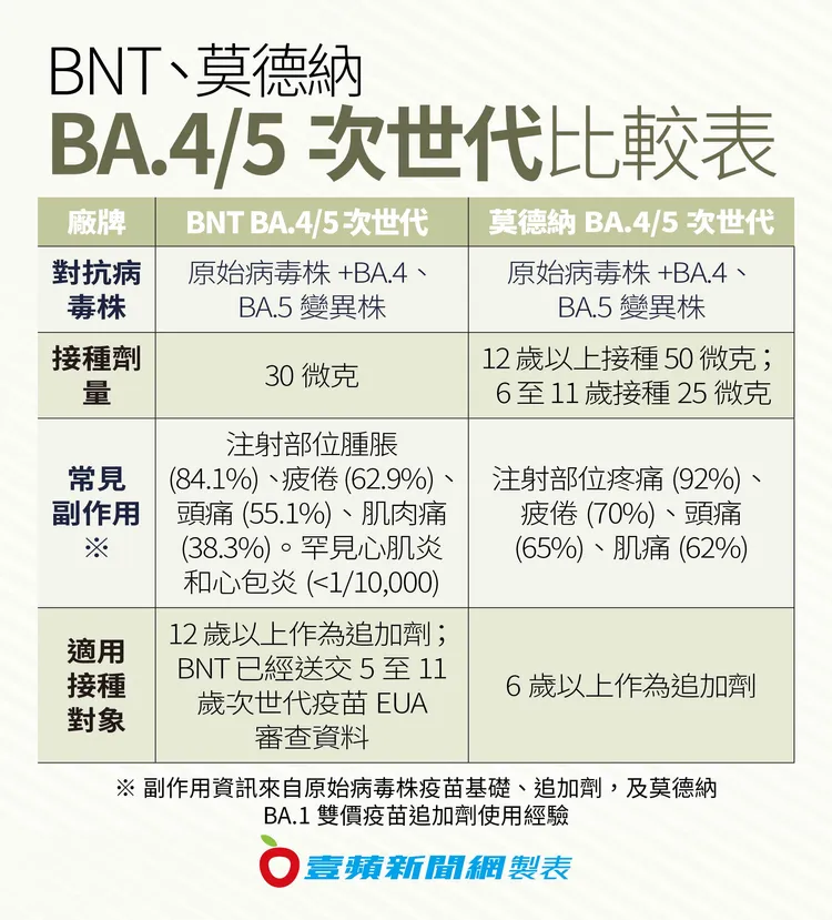 食品藥物管理署10月26日通過BNT次世代BA.4/5雙價疫苗專案輸入,適用於12歲以上青少年及成人作為追加劑使用,然而政府至今未採購BNT次世代疫苗,鴻海創辦人郭台銘大表不滿,提及自己97歲母親已接種3劑BNT疫苗,現在國內沒有BNT次世代疫苗,若要打第4劑只能選擇莫德納次世代,質疑為何政府不採購BNT次世代疫苗,讓民眾承擔混打風險。