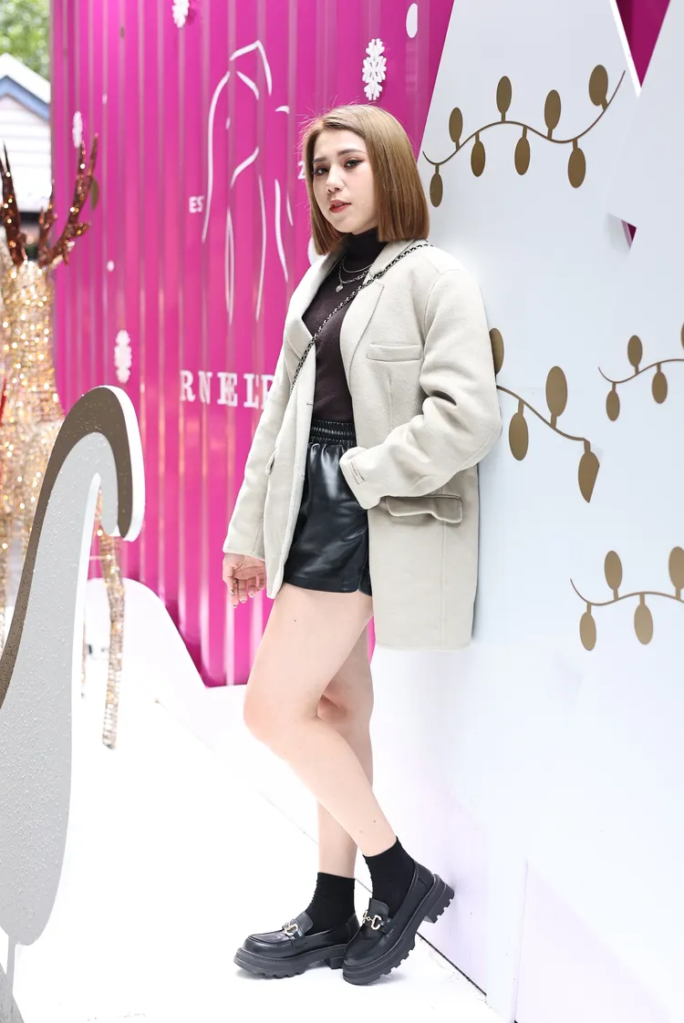 萱萱表示自己平常喜歡看電影、聽音樂,拍攝這天行程滿檔,打算逛完信義區後轉戰新北體驗耶誕。因為北部較冷她穿著比較多,其實她的IG有許多泳裝美照,她說:「最能療癒我的非海莫屬。」