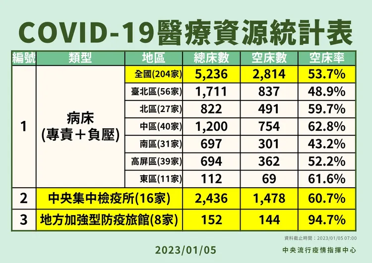 此外,針對目前醫療資源,羅一鈞表示,全台總床數來到5236床,有半數以上空床,會逐周檢討是否有加開需求,昨初步討論,除東區以外,各區開設數原則上自現行3%調整為5%,細節由醫事司發文對各醫院說明。