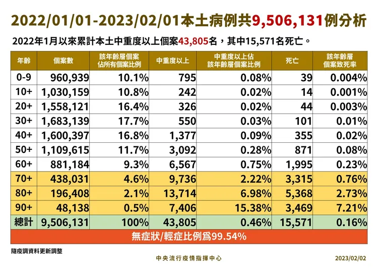 指揮中心發言人莊人祥說明,今日本土病例數雖較上周四增加7859例,不過本周以來上升幅度逐漸下降,從周一1.1倍、周二1.2倍,周三增92%,今天降到4成;至於今天死亡個案比較堆多,可能是春節期間死亡,年後補通報。