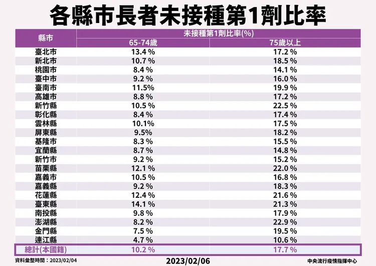 至於新竹縣、苗栗縣與澎湖縣75歲以上長者,未施打疫苗的比率超過22%,這些縣市是否有催打措施?王必勝說,這些數據可以看出,染疫後造成死亡的重要因素,除高齡與共並外,最明顯的就是沒打過疫苗。