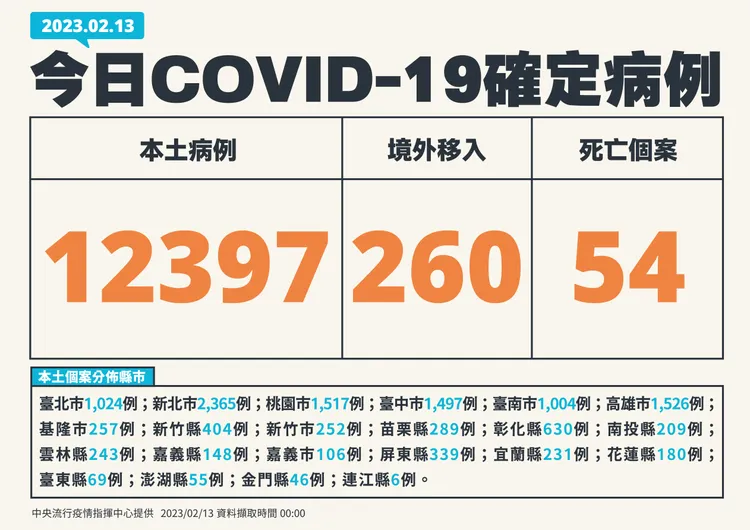 周志浩說明,今天公布新增本土新冠肺炎個案12397例,較上週一的16391下降24.4%,境外移入260例,另有死亡個案54例。