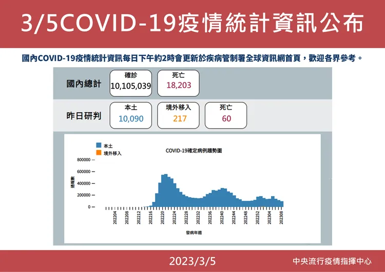 指揮中心公布,1萬90例較上週日的1萬2792下降21.1%,指揮中心發言人羅一鈞說,明天有可能降到萬例以下,基本上只要沒有連假效應,因為周日看診與通報都較少,所以通常周一都會是公布數最少。