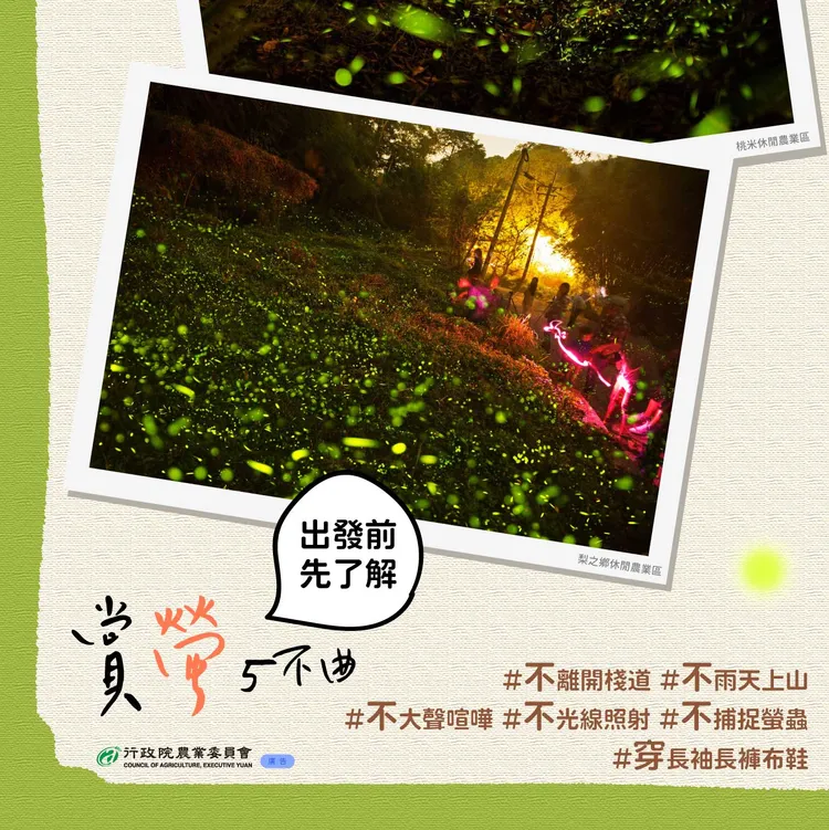 此外,農委會提醒,由於地理條件及氣候差異,每個地區的螢火蟲發生期都不太一樣,所以前往賞螢前,建議先行預約,才不會白跑一趟。