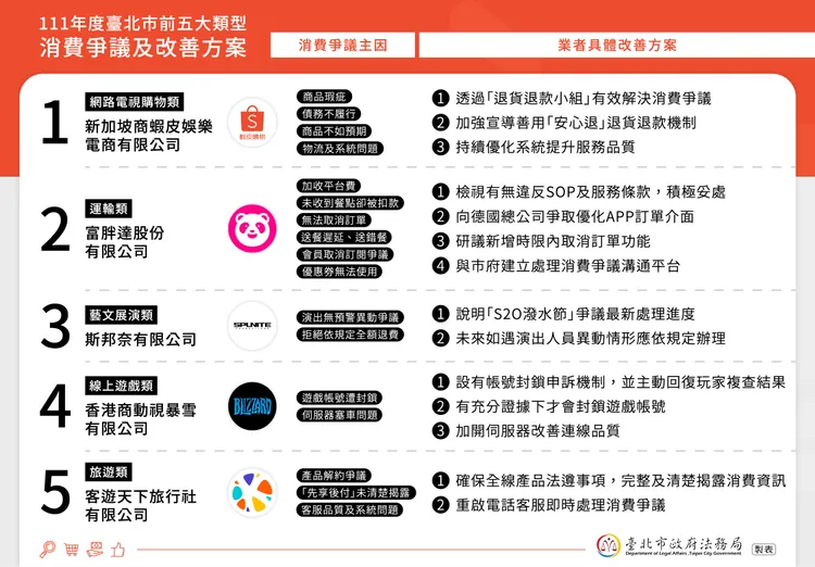 北市消保處日前首度邀集「2022年北市消費爭議最多之5大類型遭訴榜首業者」到府「喝咖啡」,要求業者應主動檢討消費爭議之成因,並導入流程改善及管理,以防範類似爭議未來一再發生。