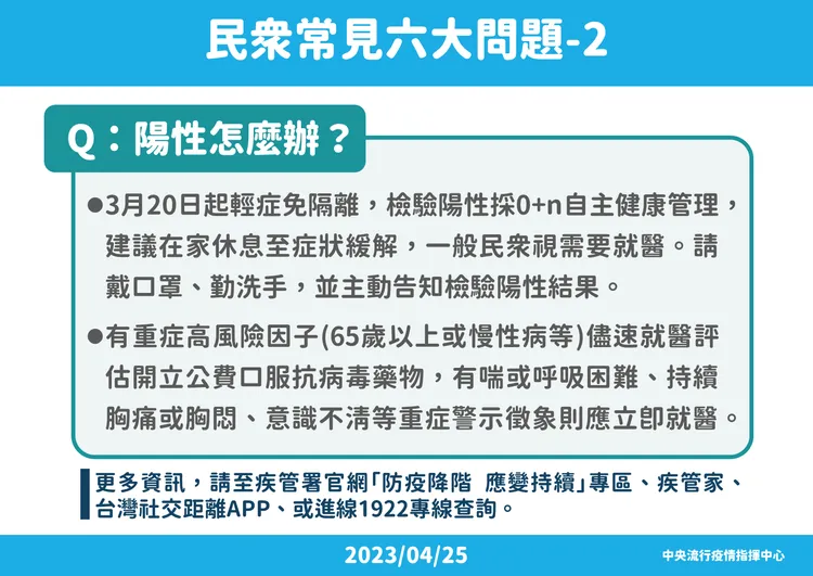 未來快篩哪裡買、快篩陽性怎麼辦、確診治療費用怎麼算、新冠疫苗哪裡打、口罩規定是否有改變,以下整理6大QA帶大家快速掌握: