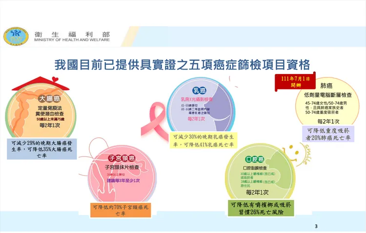 依據國民健康署「癌症登記報告」結果,2020年新發生癌症人數為12萬1979人,平均每4分19秒就有1人罹癌。由於癌症初期並無明顯症狀,等到身體發生警訊,可能為時已晚,惟有透過癌症篩檢早期發現、早期治療,才可阻斷已發生變異的細胞發展為癌症,以提升自身存活率。
