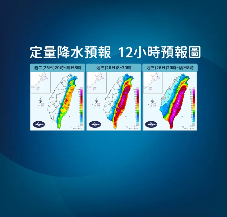 他說,未來一天,預計東半部大雨持續不停的下,今天東半部降雨明顯,尤其宜蘭山區、花蓮、台東,恆春半島到屏東山區,降雨相當明顯狀態,到今天入夜並不會趨緩。甚至因颱風更接近,雨勢入夜會更加轉大,西半部雨勢不像東半部這麼大,但有局部短暫陣雨機會。