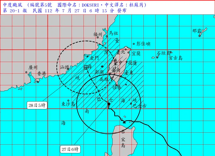 至於風力方面,北部雖未在暴風圈警戒範圍,但風力也不小。氣象局表示,今(27)日基隆北海岸、恆春半島及蘭嶼、綠島易有10至11級強陣風,新竹以北、宜蘭、東南部沿海空曠地區及金門、馬祖易有9至10級強陣風,新竹以北地區及台北盆地亦有較強陣風,請特別注意。今下午起南部沿海空曠地區及澎湖將有9至11級強陣風,請注意。