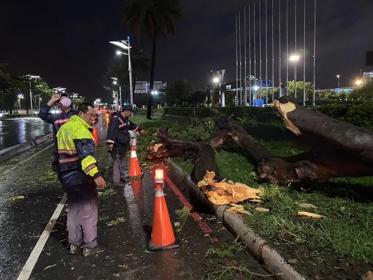 高市府統計,受颱風影響,截至27日晚上10時22分,高雄市路樹傾倒災情累計已55棵,其中待處理移除件數39棵。另外截至28日0時18分,高雄市招牌鐵皮倒塌累計16件,待移除處理件數10件。