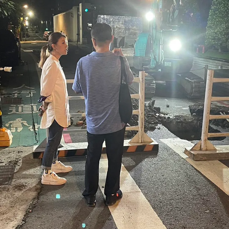 民進黨台北市議員顏若芳今晨在臉書發文指出,台北市竟然在短短3個月出現4個天坑!民生東路二段159巷口昨晚路面塌陷,晚上11點新工處開始施工搶救、找坍塌原因,終於在12點近半的時候找到原因,是旁邊側溝有破洞漏水,地下土壤被側溝漏水帶走,導致路面坍塌。