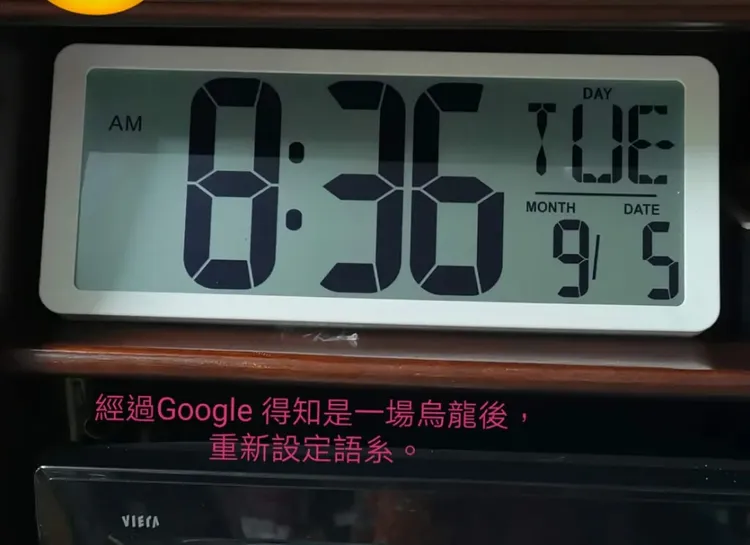 記者爆料網指出,隔天當事女子起床後,本想著要趕快辦理退貨時,突然想到是否語言介面錯亂?上網Google查詢,這才發現原來是電子鐘的語系設定成德文,德文的星期二Dienstag縮寫就是DIE,而星期一的縮寫則和英文相同是MON,因此9/4週一她沒發現異狀,這才真相大白結束這場鬼月烏龍驚魂。