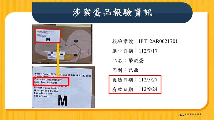 農業部指出,巴西雞蛋因應長時間運輸有塗食用臘,最長可保存120天,最後一批巴西蛋5月底裝船、保鮮期到9月底,臉書粉專「Linbay好油」卻發現,近日仍在販售的巴西蛋,標示為9月5日製造、保存期限到10月5日。對此,該批雞蛋廠商台農蛋品坦言標示錯誤,將全面下架 。
