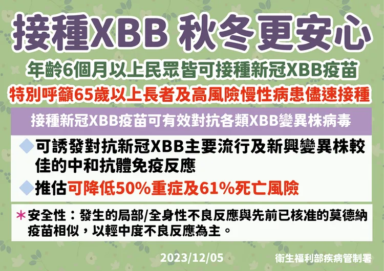 截至本(2023)年12月3日止,658萬劑公費流感疫苗已使用超過594萬劑,整體使用率已達9成,其中65歲以上長者接種率49.2%,以及學齡前幼兒至少1劑接種率57.5%,疾管署籲請65歲以上長者、嬰幼兒、高風險慢性病人及孕婦等流感高危險群儘速前往接種。