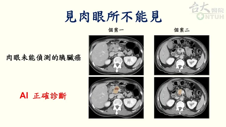 為了解決此一臨床困境,台大醫院與台灣大學合作,利用3000多個病例影像資料開發出世界首創的胰臟癌人工智慧CT診斷輔助系統,能幫助醫師發現CT上肉眼難以偵測的早期胰臟癌,在全國性實際臨床資料驗證中正確率超過九成、能偵測約8成的小於2公分胰臟癌。