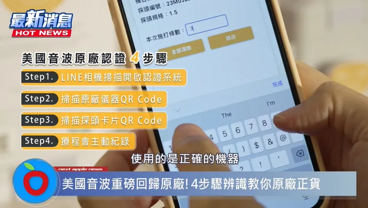 為了讓拉提效果達到美國音波黃金標準,民眾施打療程前務必要先做原廠認證動作,建議至具有原廠認證機器的診所,透過認證系統辨明原廠儀器與探頭,才能確保具最佳拉提效果、療程安全保證,愛美族群花錢才能得到最佳療效不吃虧。美國音波Ulthera® LINE 4步驟認證系統,一分鐘即可完成認證,並獲得記錄每次施打發數和日期的原廠保證卡,除了辨明原廠,還能夠供日後回朔過去施打紀錄,讓醫師做更準確的判斷,也讓消費者更放心。