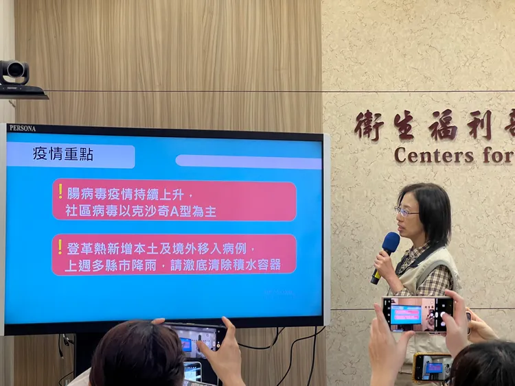依據疾管署監測資料顯示,目前國內處腸病毒流行期,上週門急診就診計13929人次,較前一週上升17.3%,近期疫情呈上升趨勢;另實驗室監測顯示腸病毒以克沙奇A型為主,其中易引起嚴重症狀之腸病毒A71型及D68型病毒型別,為零星檢出且感染個案均為輕症。研判國內疫情傳播風險上升,呼籲民眾及教托育機構人員持續注意預防措施及警覺腸病毒重症前兆病徵。
