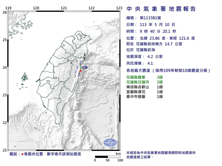 相對位置:花蓮縣政府南方 31.2 公里 (位於花蓮縣近海)