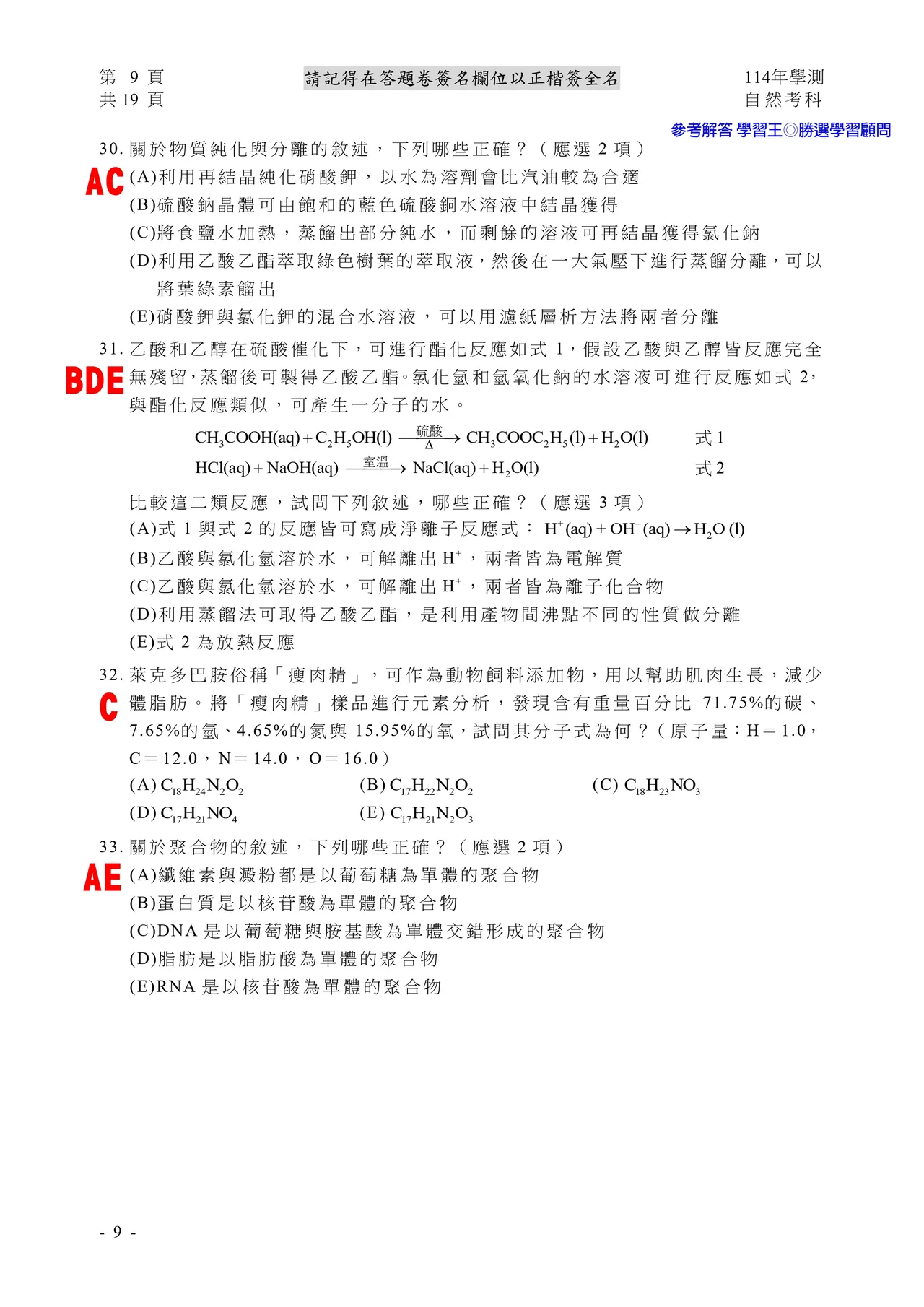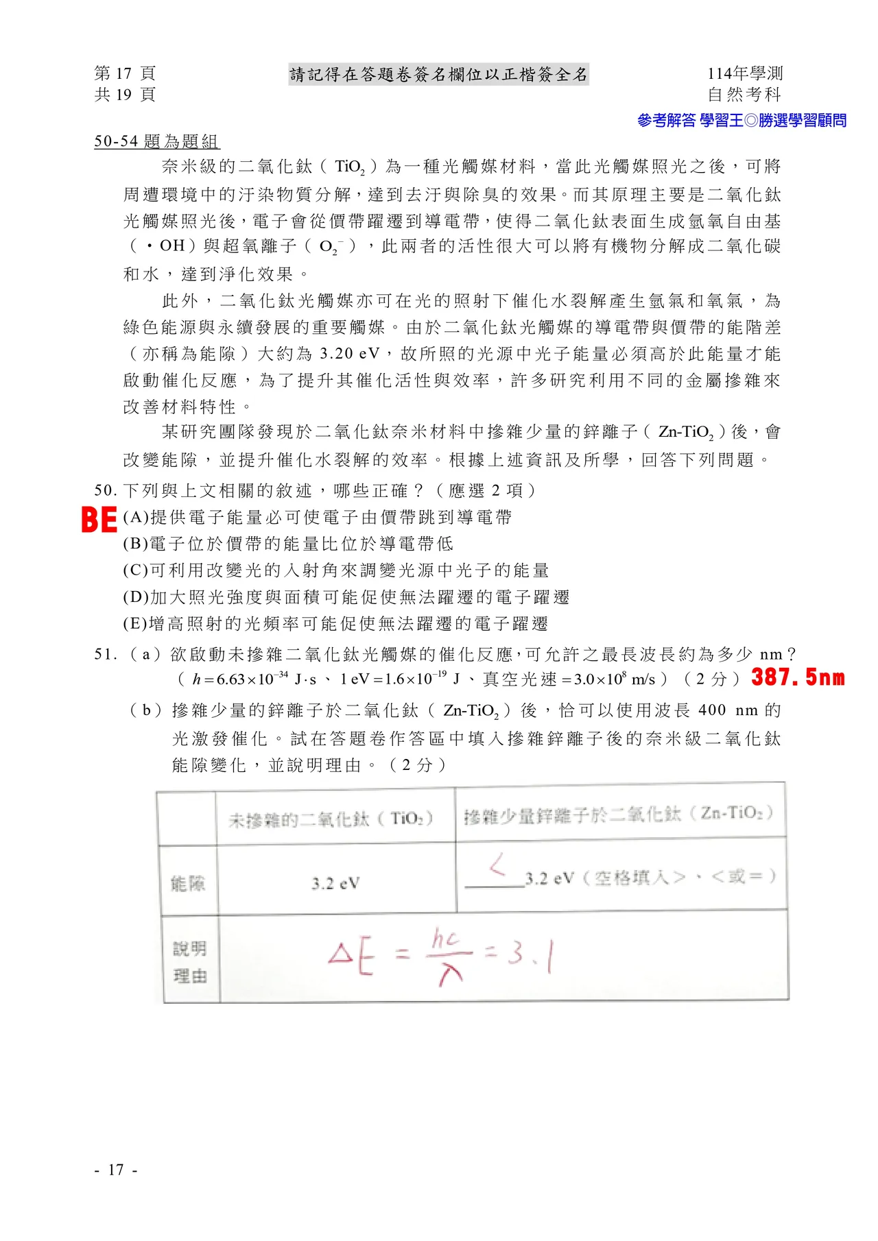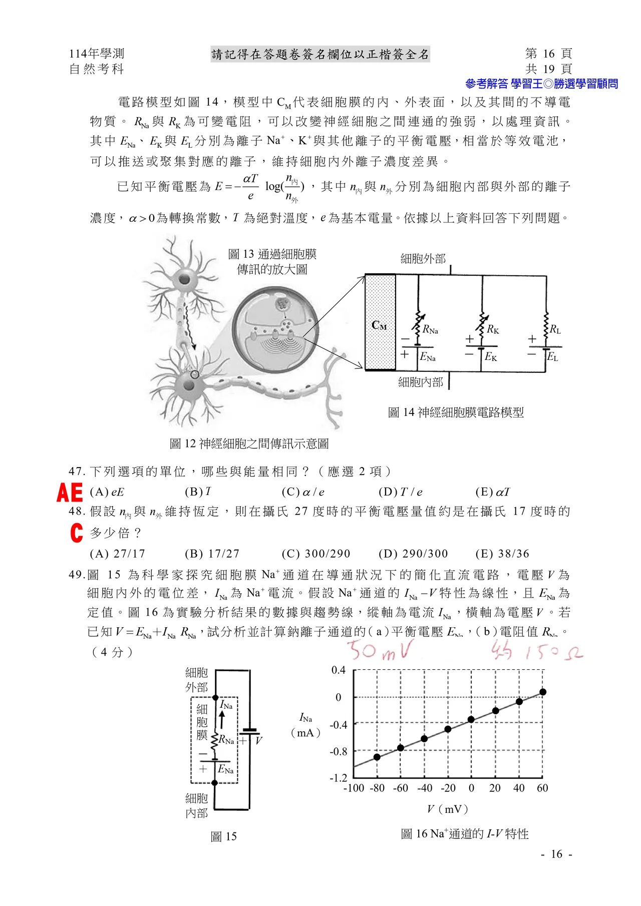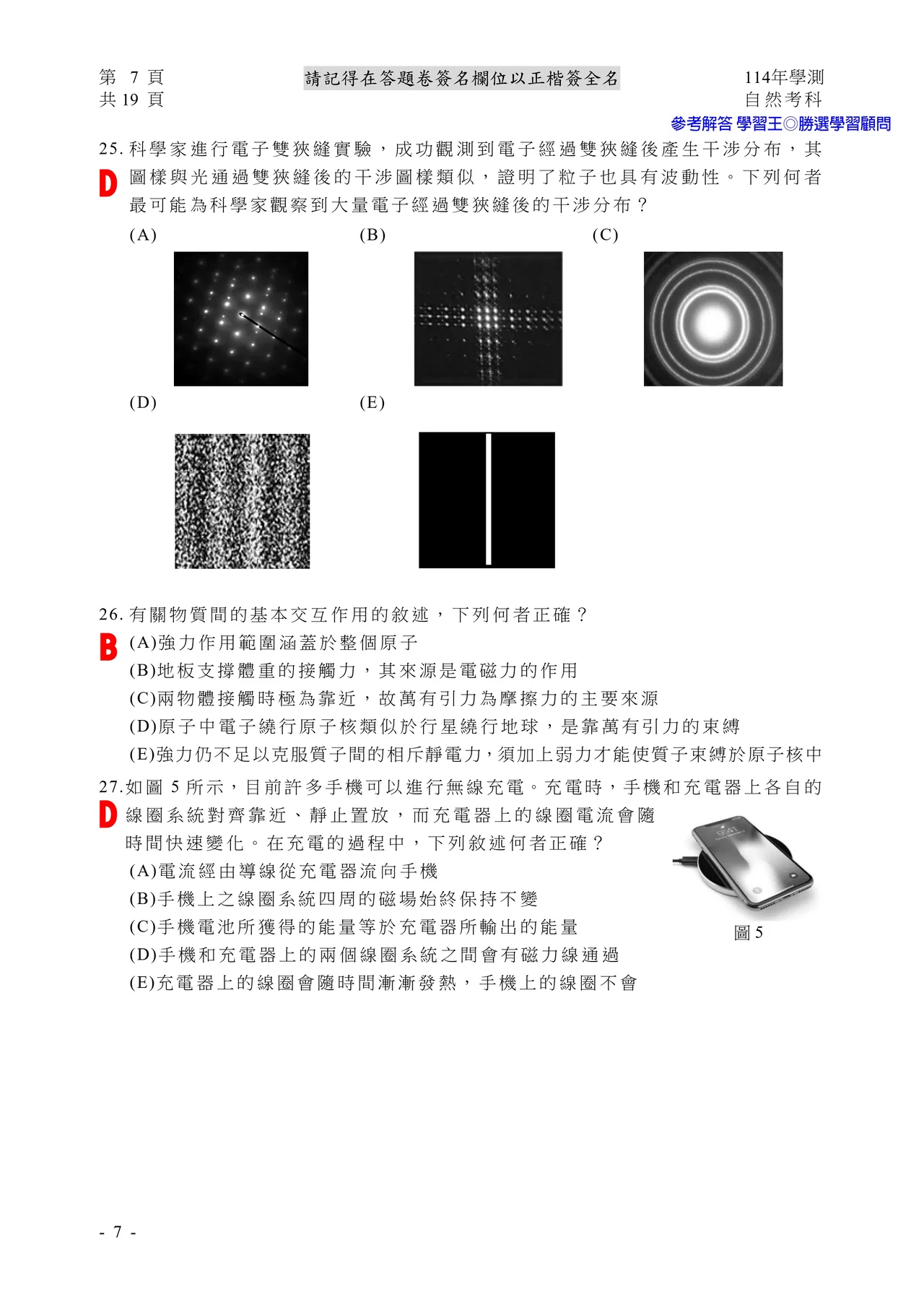 【記者黃泓哲/綜合報導】114年大學學測自然科考試已結束,大考中心公布題目,參考答案由學習王提供,正確答案仍以大考中心為準