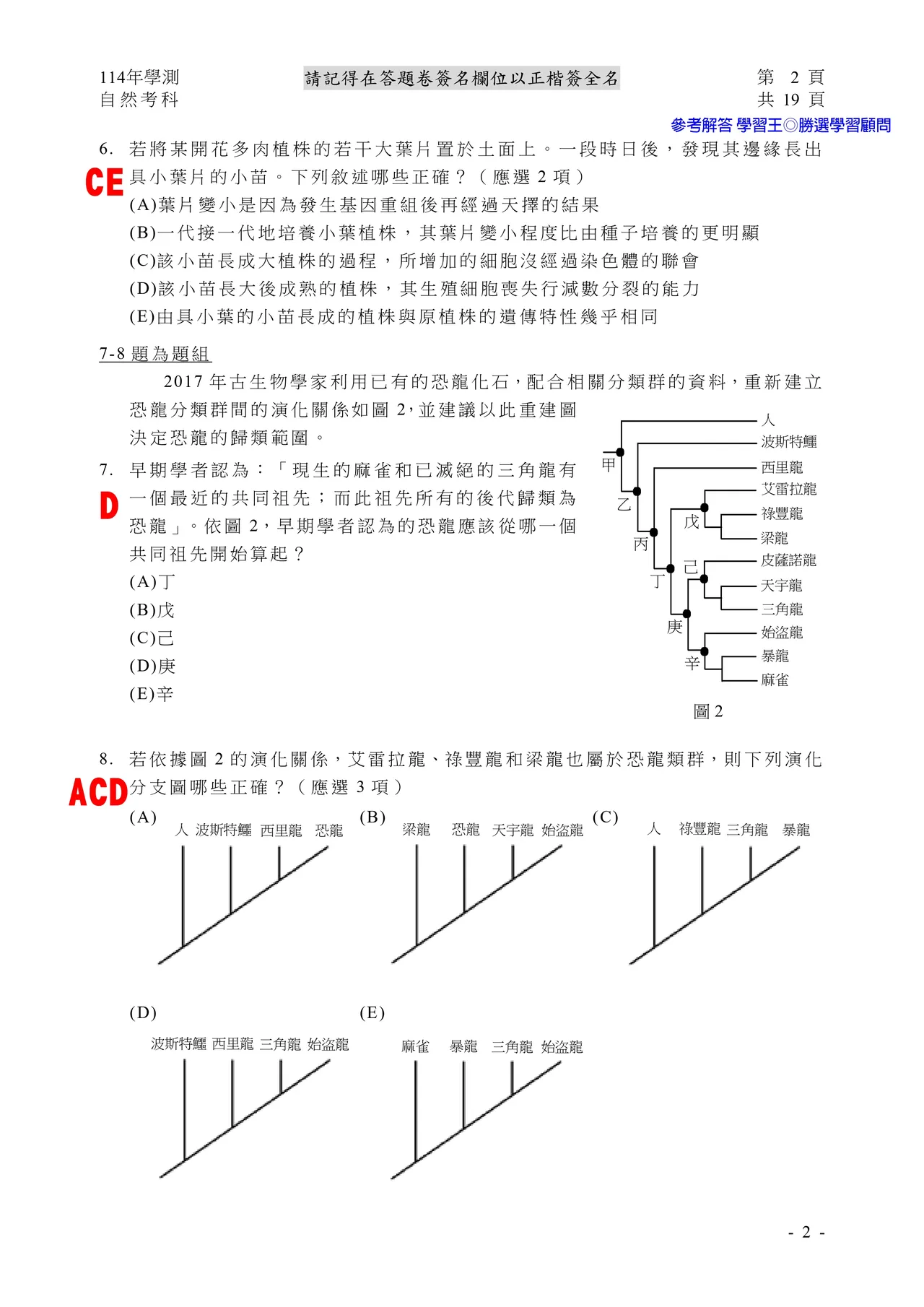 114學年度學測自然科參考解答。示意圖。莊宗達攝