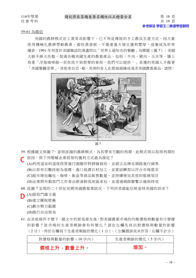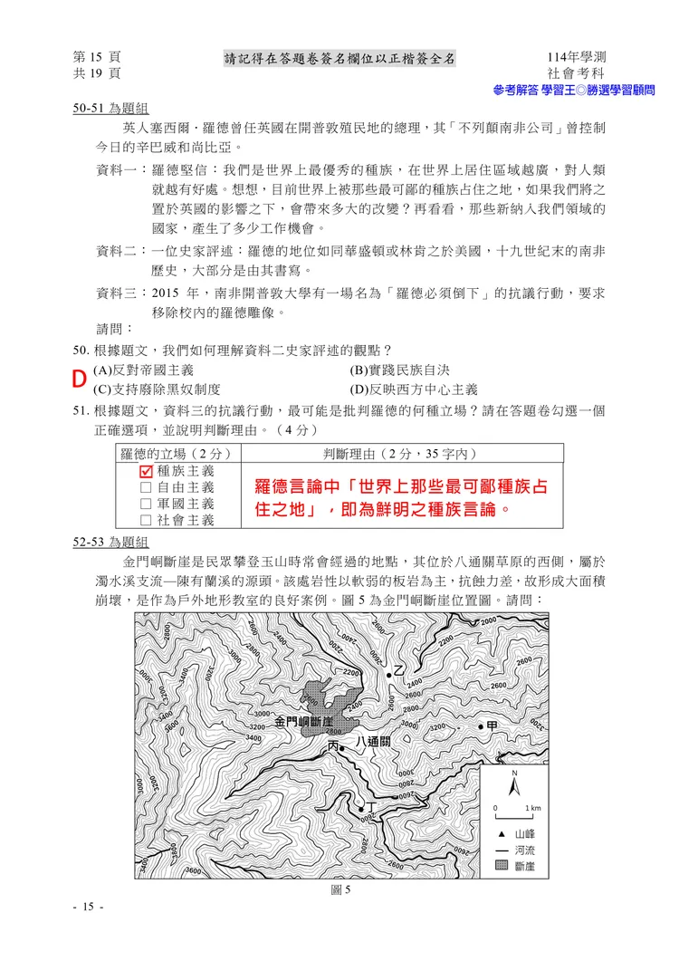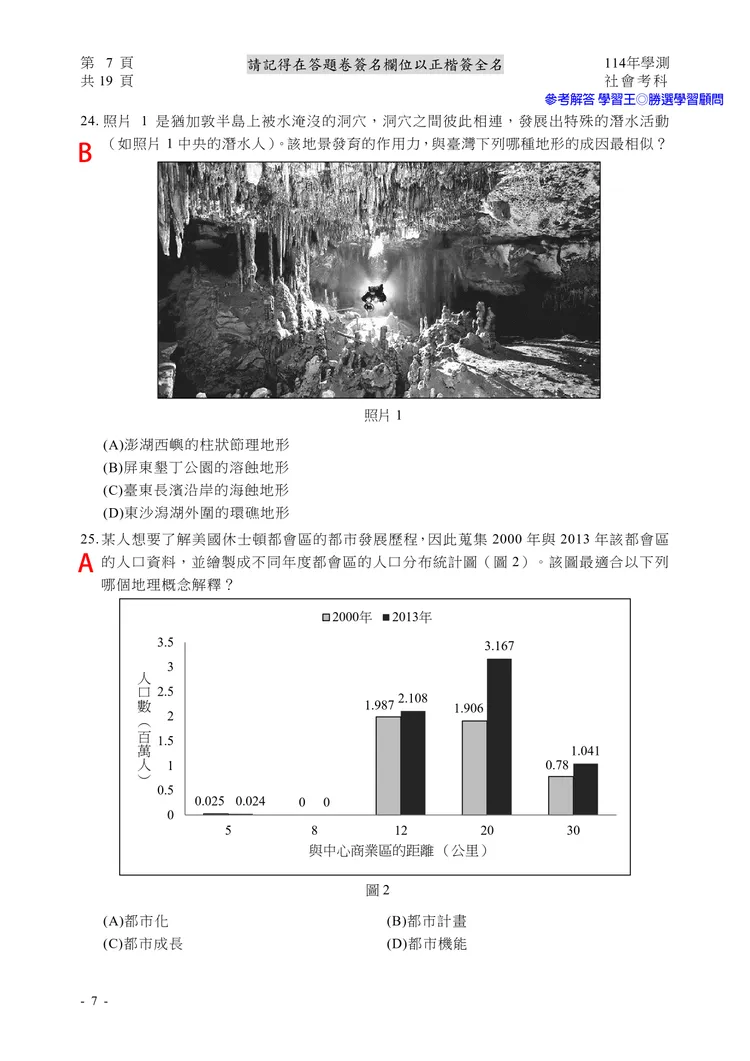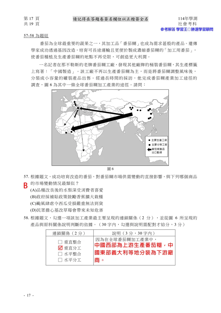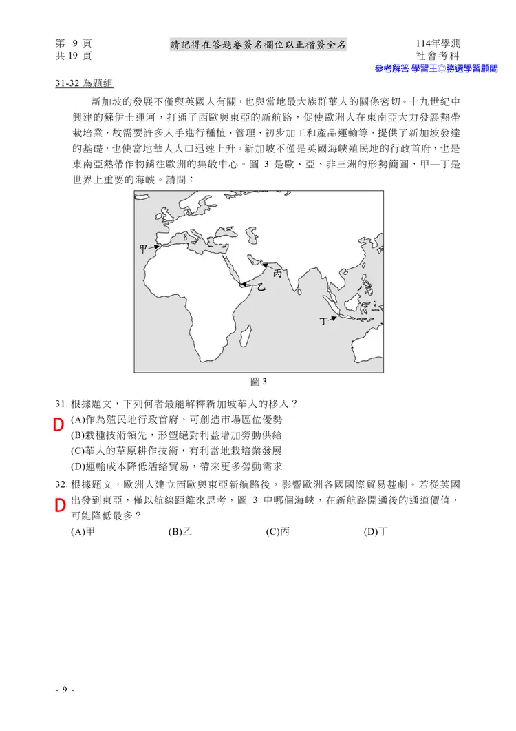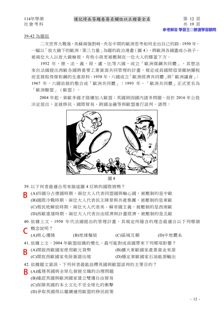 【記者黃泓哲/台北報導】】114年大學學測社會科考試已結束,大考中心公布題目,參考答案由學習王提供,正確答案仍以大考中心為準。