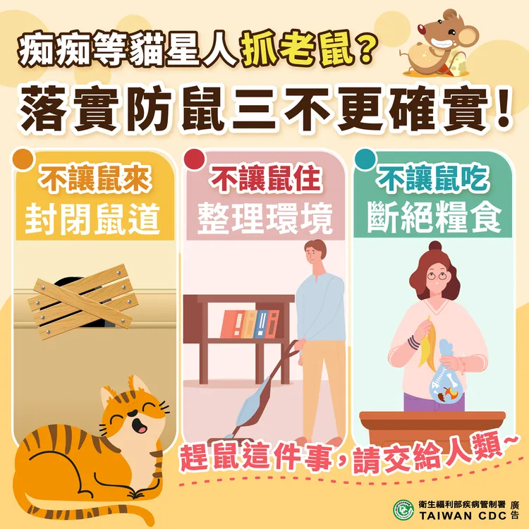北市衛生局呼籲,落實居家防鼠3不策略