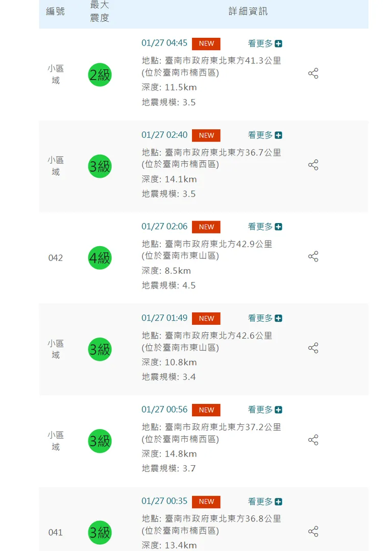 今天上午08:18左右臺東地區發生有感地震,預估震度3級以上地區:雲林、嘉義、臺南、高雄、屏東、花蓮、臺東。