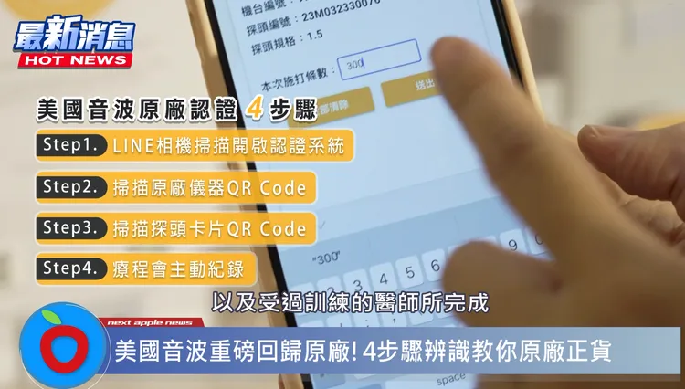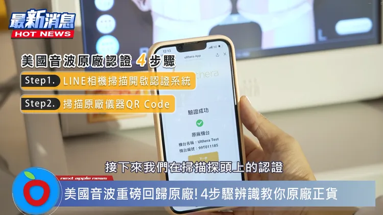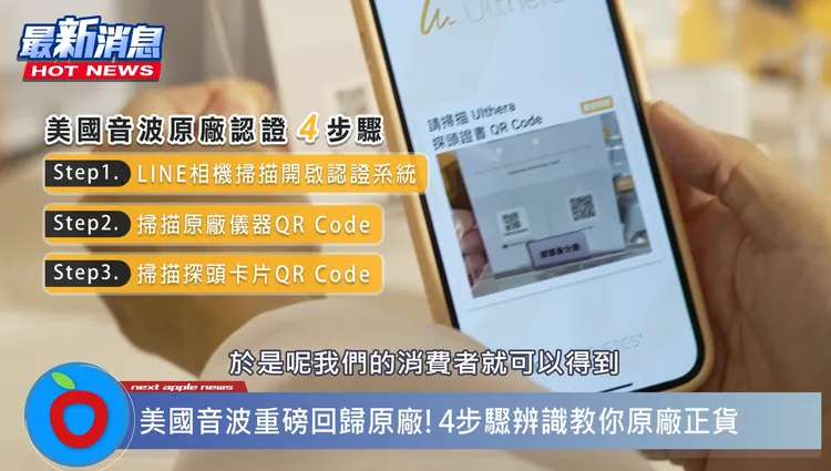 愛爾麗診所 呂彥杰醫師表示,民眾若不慎使用到未經認證的儀器可能引發燙傷、水泡或不可逆的臉部凹陷等不良反應。因此,為了替消費者把關療程與儀器的安全性,美國音波Ulthera首創客製化原廠認證LINE APP,全面啟動原廠認證防偽系統,建議消費者進行療程前透過原廠官方LINE,按照以下四個步驟掃描QR Code,簡單認明儀器與探頭是否為原廠製造,杜絕安全無保障的仿冒品!