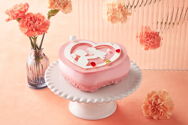 這次兩款母親節限定蛋糕包含「玫瑰荔枝與覆盆子慕斯心語」,以經典玫瑰荔枝覆盆子馬卡龍基底,搭配覆盆子蛋糕、荔枝覆盆子果凍及玫瑰馬斯卡彭奶油,特別打造的愛心圖樣更是適合母親節表達心意;另一款「經典開心果塔」,以近年熱門的綠皮開心果為主題,結合開心果海綿蛋糕及果仁糖,再搭配開心果香緹奶油與開心果巧克力淋面。