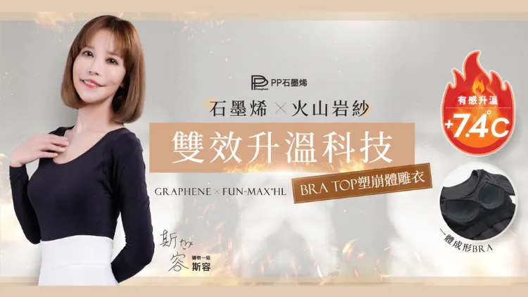 因此,PP石墨烯團隊再次推出劃時代新品——火山岩塑崩衣,它不只是一般的 BRA TOP,而是將內衣的舒適支撐、保暖衣的升溫效果、高科技能量衣的循環力完美合一。透過創新技術,讓女性不必再依賴厚重的洋蔥式穿法,一件即暖,輕盈過冬!