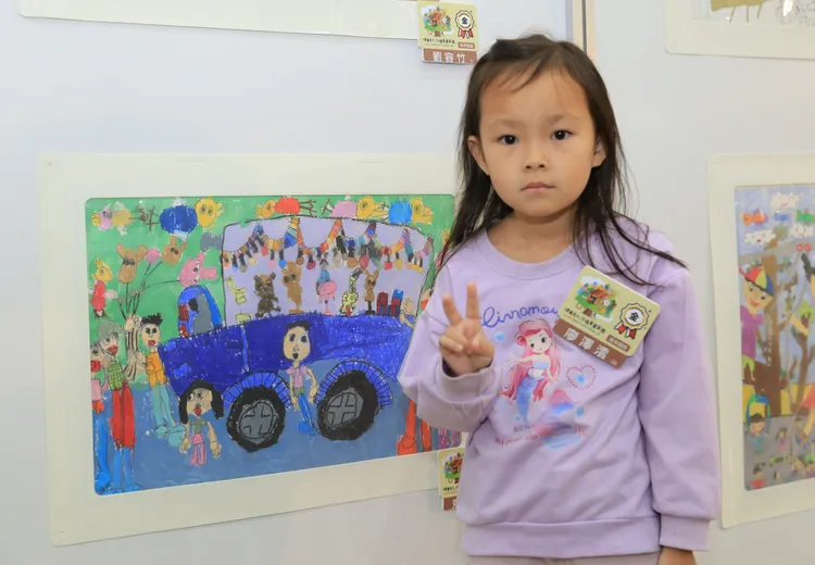 來自雲林斗六鎮南國小的廖同學,畫下她在遊樂園購買玩具的情況,人物表情生動、造型純真可愛,首度參加就獲得評審青睞,勇奪金獎,她說畫畫很簡單,一次就畫完了,得獎很開心;廖爸爸說,國泰把活動設計得很有質感,頒獎典禮很熱鬧,感謝孩子可以參加這麼有意義的活動,未來也會鼓勵女兒繼續參加。