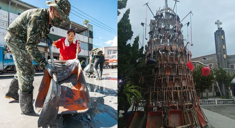 只見族人用鏟子、鋤刀、推車等工具,疊成一棵樹的樣子,讓網友看了也紛紛留言直呼「這精神真的要紀念一下,光復加油」、「好有才喲」、「很特別的聖誕樹」。