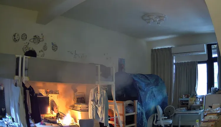 當下民眾臨時下將起火的行動電源丟入垃圾桶,便衝下樓試圖在戶外滅火,垃圾桶瞬間被火燒融,所幸最終成功滅火,但腳底仍被燙傷須前往醫院治療。