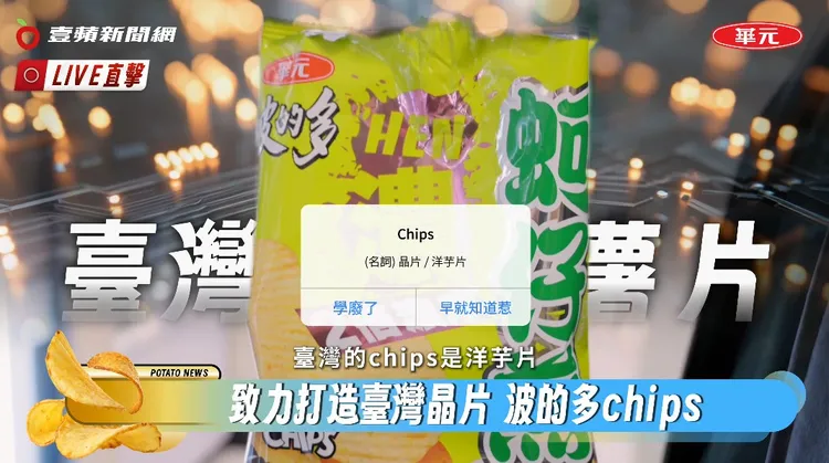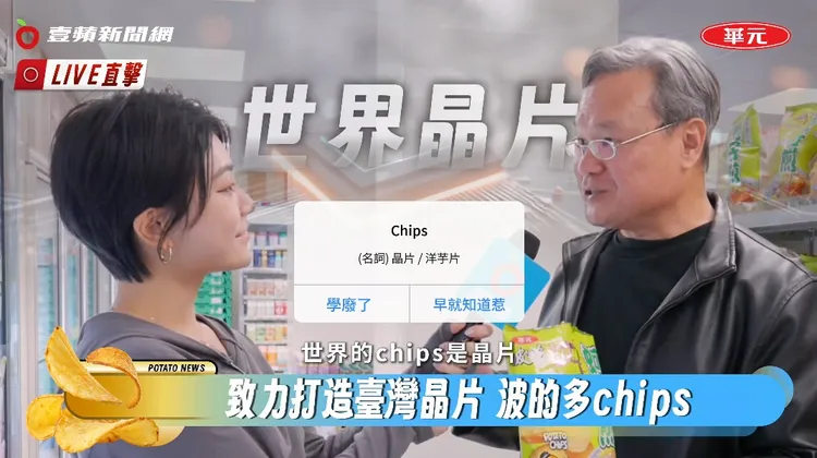 《壹蘋》鏡頭帶您近距離揭曉真相!原來那個黃仁勳是做晶片,這個神秘男子「黃任勳」是愛吃薯片的!好巧不巧晶片跟薯片的英文都是chips!黃任勳說:「世界的chips是晶片,台灣的chips則是薯片!尤其這款波的多2倍濃厚蚵仔煎口味,一吃入魂,越吃越涮嘴!」