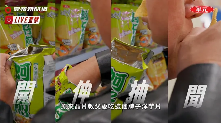 《壹蘋》鏡頭跟著晶片教父進入超商後,發現他站在零食貨架前動也不動,仔細研究端詳、認真思考著什麼,彷彿在腦中醞釀接下來的投資策略,只見他緩緩拿起一包洋芋片…
