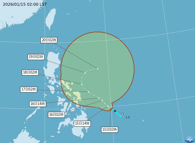 颱風動態方面,氣象署表示,目前太平洋地區有1個熱帶性低氣壓TD01,15日2時中心位於北緯9.6度、東經129.9度,以每小時5公里向西北進行,中心氣壓1004百帕,近中心最大風速每秒15公尺、瞬間最大陣風每秒23公尺。林定宜指出,該系統今天有機會發展為今年第1號颱風「洛鞍」,未來在菲律賓東方海面活動,對台灣無直接影響,但其外圍水氣與環流仍可能使東半部迎風面降雨增加;之後受冷空氣南下影響,系統將由西轉向東北移動,朝琉球南方海面前進,且逐漸減弱、不再持續發展。