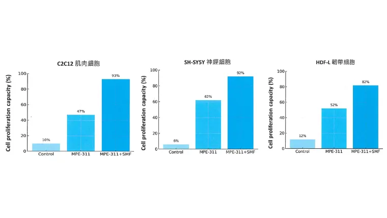 在這份權威報告中,研究團隊針對人體行動力的三大核心——肌肉、韌帶與神經細胞,進行了生長測試。結果顯示,透過特定的營養因子組合,細胞展現出令人驚訝的再生能力:
