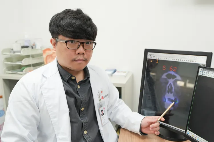 檢查發現,黃先生左側臉頰黏膜已有約2×1.5公分腫瘤,雖然疼痛感不明顯,卻已造成口腔異物感與張口受限。醫療團隊隨即安排切片檢查,證實為惡性腫瘤,後續透過電腦斷層與正子攝影確認分期,確診為第二期口腔癌。