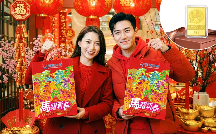 遠東百貨2026年更加碼推出「馬上發財・福袋生金」抽黃金活動。凡遠百APP金級會員於全台各店福袋販售期間購買新春福袋,除了抽各店頭獎之外,還可參加第二重「馬年開運福袋抽黃金」,全台將抽出5名幸運得主,贈送價值64,268元的「點睛品一馬當先珍藏黃金金片10克」。中獎名單將於2月24日電腦隨機抽出,並於2月25日15:00公布於各店大門口與遠百官網,全台限量3,250份福袋,象徵新年好運「馬上到位」!