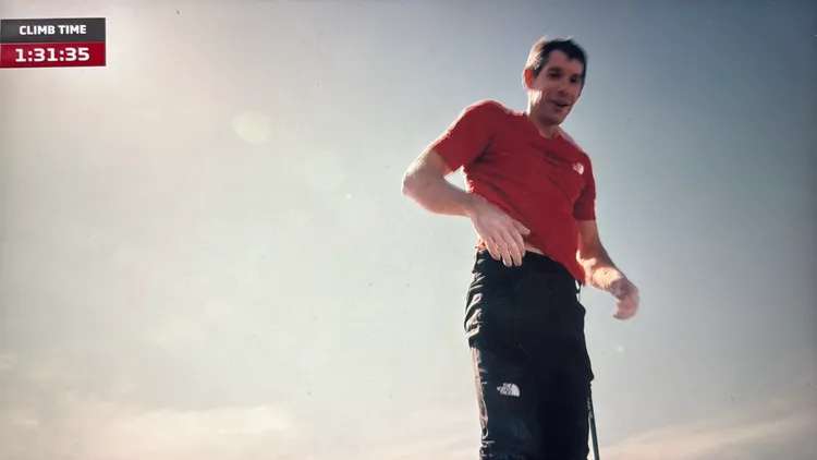 攀登過程中,霍諾德先以約16分半完成難度較低的基座區1到25層,進入26層後的竹節區後,結構變得更複雜、攀爬難度明顯提高,他全程專注、步步謹慎,僅花30多分鐘完成一半路程,接著在1小時9分左右,完成登上觀景台後持續向上推進。